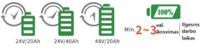 | 6.4 | Akumuliatoriaus įtampa/talpa | V / Ah | 24 / 40 | ||
