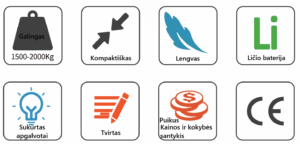 - Turi šonuose atraminius ratukus, kurie ypatingai padidina krovinių stabilumą.