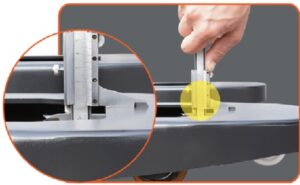 - Integruota PIN kodų klaviatūra, kuri užtikrina, kad vežimėliu nesinaudotų darbuotojai, kurie neturi tam prieiegos.
