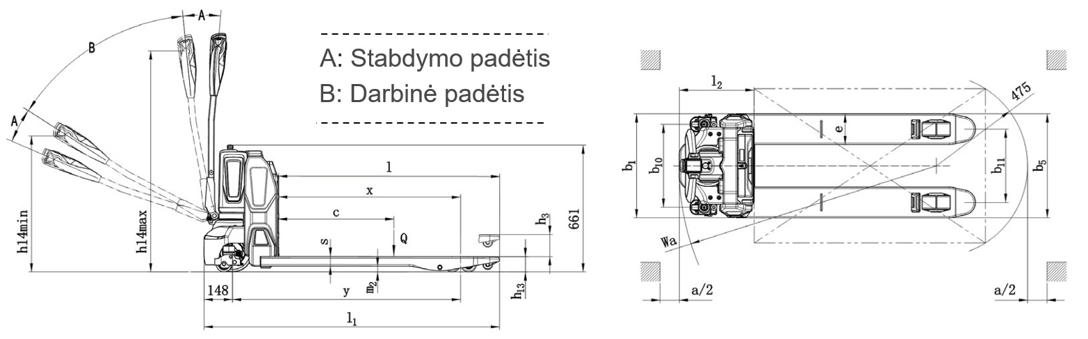- Šakių dizainas pritaikytas dirbti su paletėmis iš visų pusių – turi šakių prikėlimo ratukus