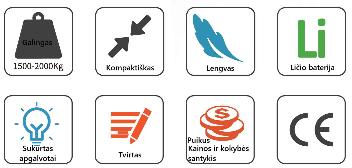 - Turi šonuose atraminius ratukus, kurie ypatingai padidina krovinių stabilumą.