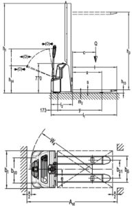 | Darbiniai parametrai | 5.1 | Važiavimo greitis, pakrautas / nepakrautas | Km/h | 4.2/4.5 |