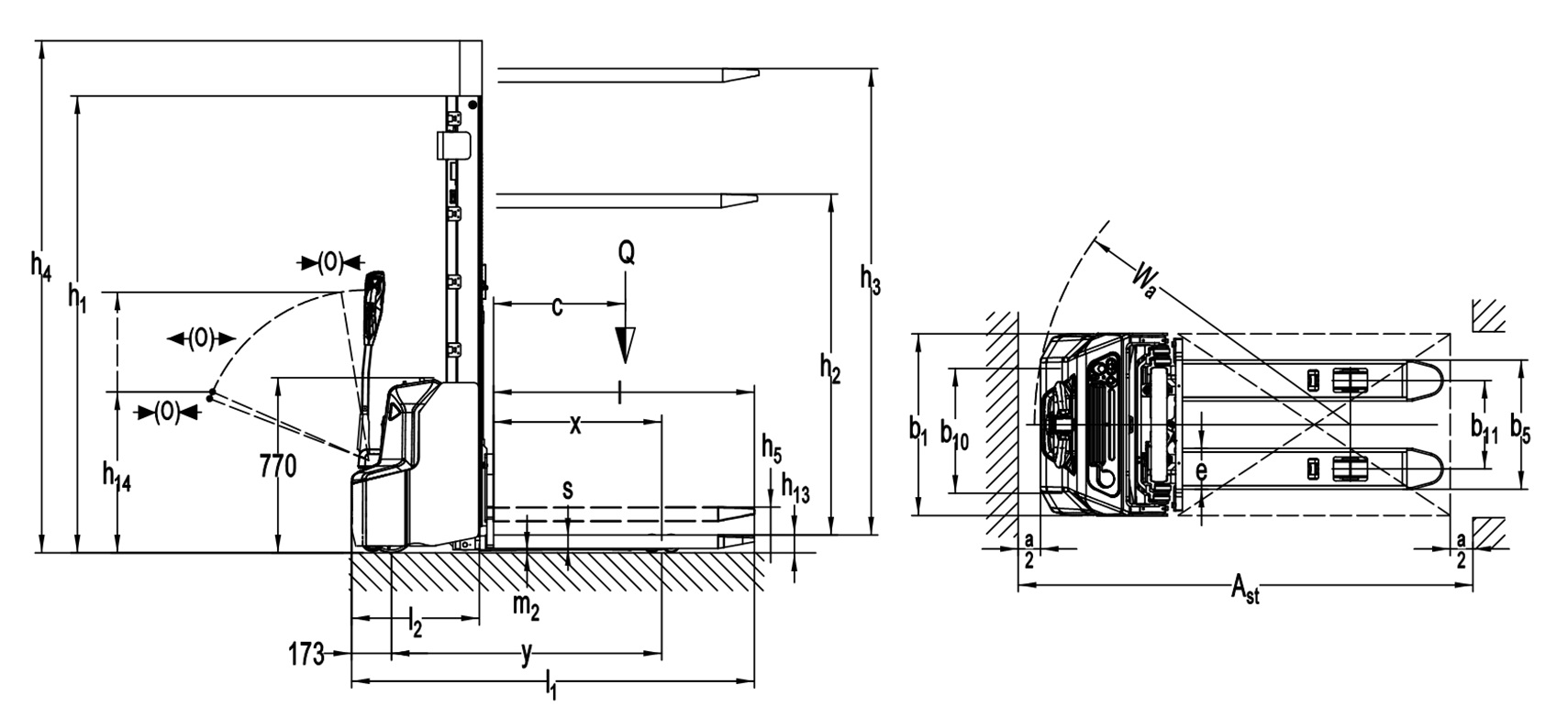 | 4.33 | Darbinis koridorius su skersai paimta 1000×1200 mm palete | Ast (mm) | 2247 / 2203 | |